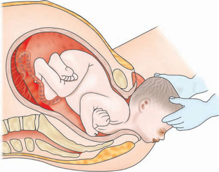- Mother pushes with each contraction